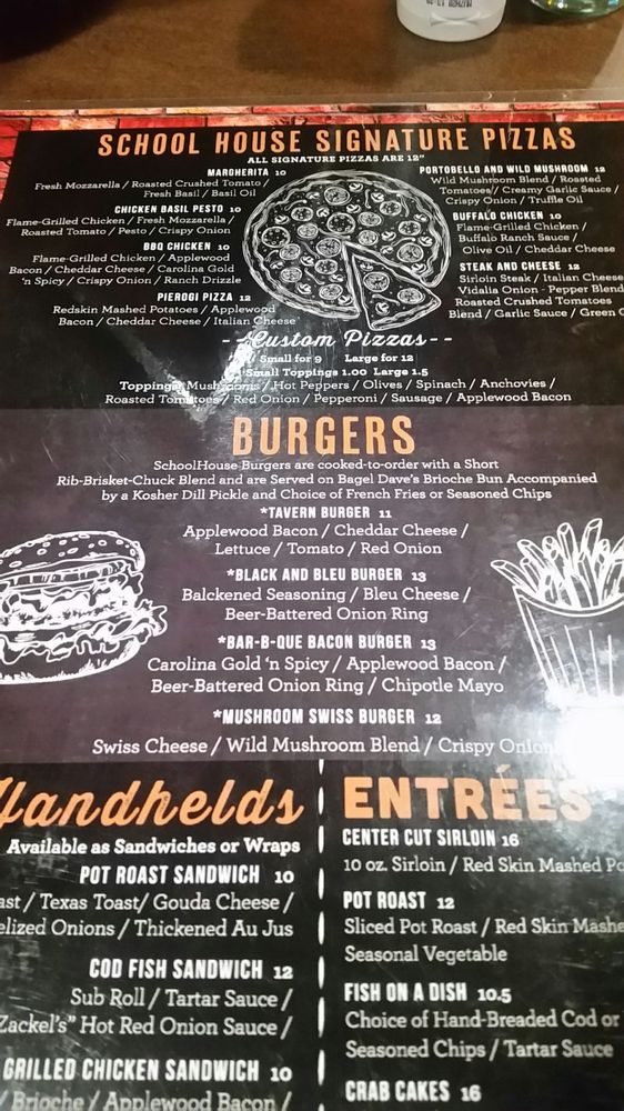 The menu extends beyond burgers, showcasing delectable options like Spaghetti & Meatballs paired with homemade marinara, and a tender Grilled Salmon plated with Parmesan risotto. For sides, indulge in Beer-Battered Onion Rings or Baked Mac & Cheese, completing your meal in style. With glowing reviews highlighting the friendly service and inviting ambiance, Schoolhouse Tavern is a perfect spot for food lovers seeking quality and comfort.